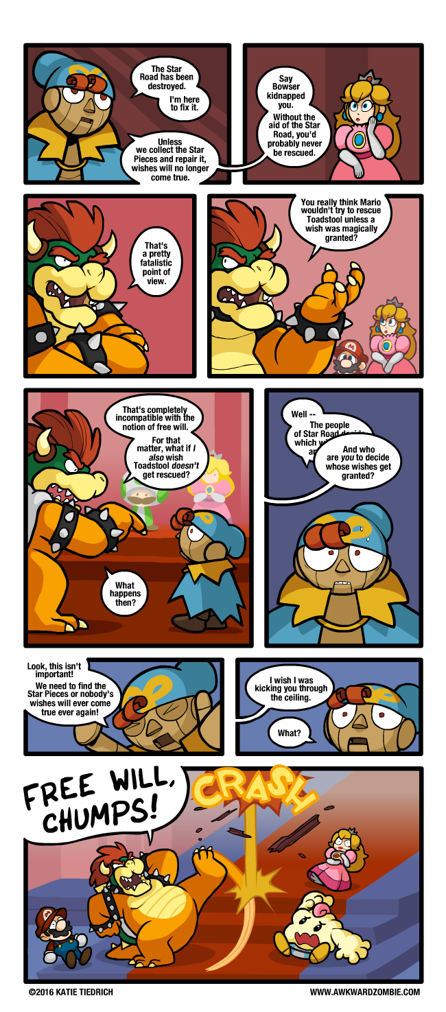 Bowser, nobody wants to talk to you about the philosophy of determinism, go home.